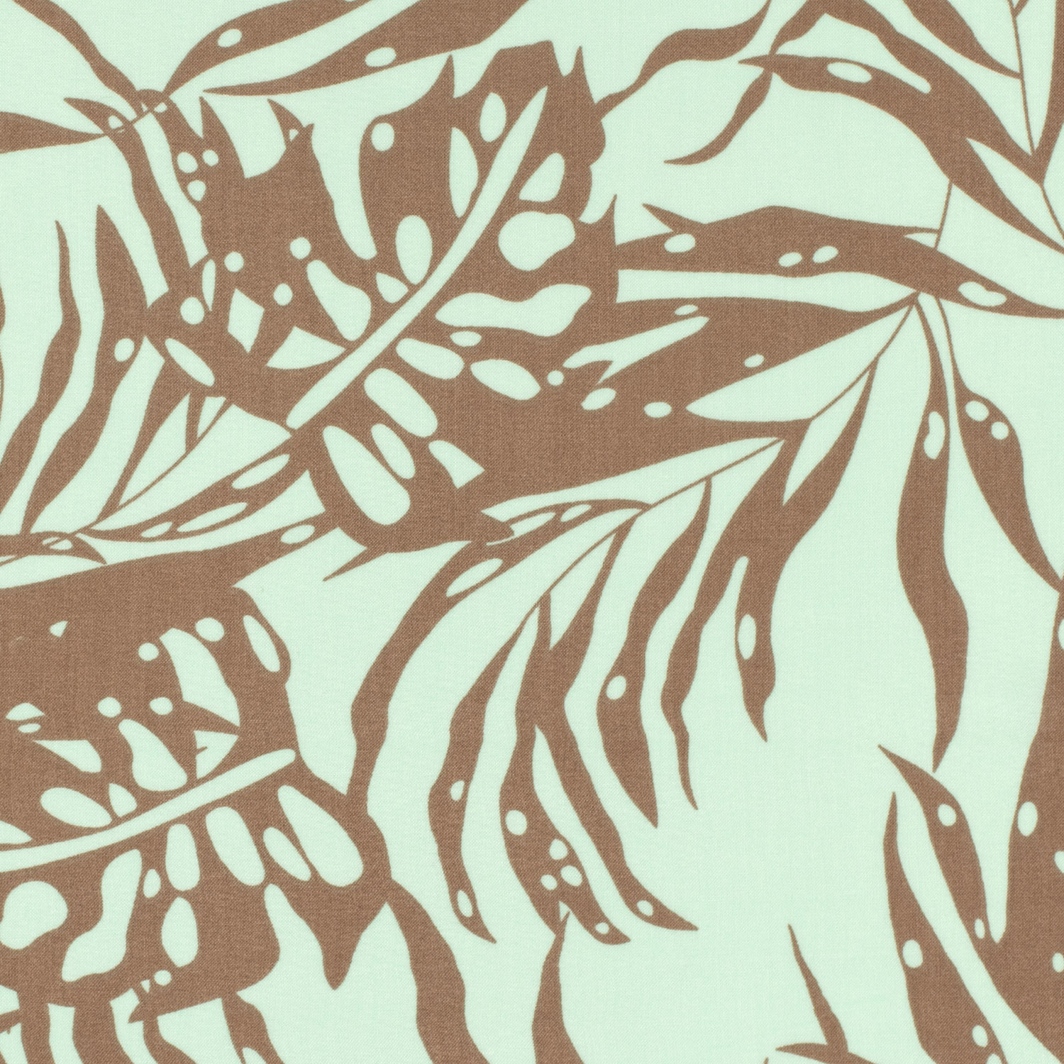 Een luchtige bamboo poplin in zacht mint met taupe bladeren print.